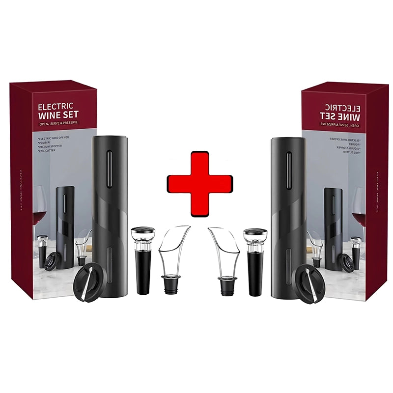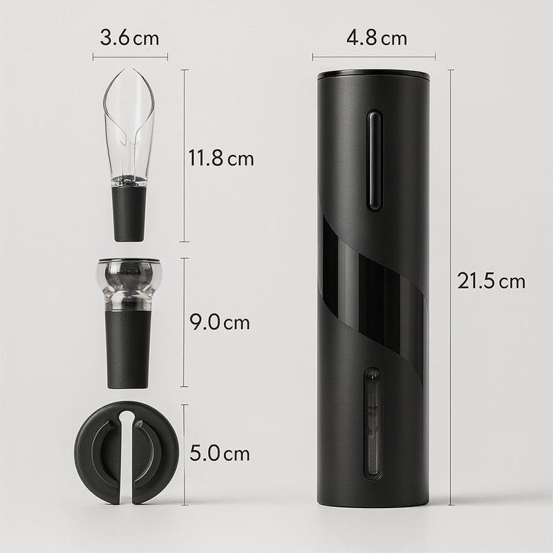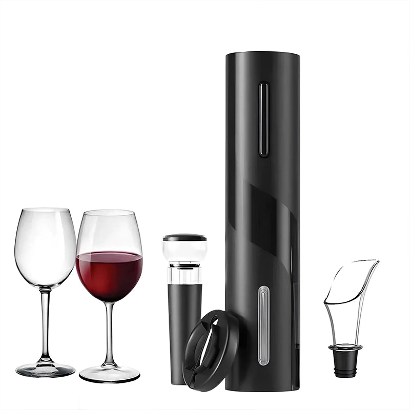 O Abridor Elétrico de Vinho Premium 4 em 1 abre garrafas automaticamente, realça o sabor, conserva o vinho por mais tempo e traz elegância à sua mesa. Prático, moderno e perfeito para quem ama vinhos.