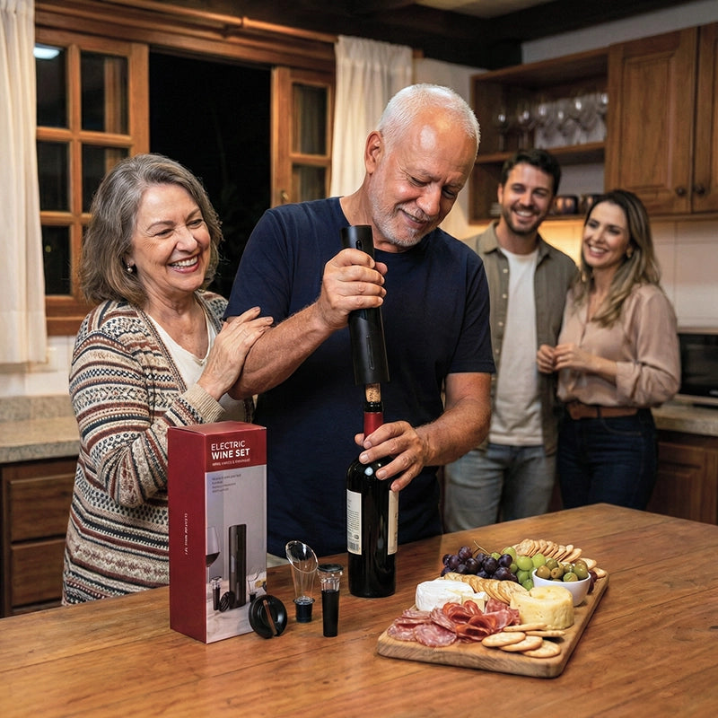 Com o Kit Abridor Elétrico de Vinho Premium 4 em 1 cada garrafa se transforma em um momento elegante e cada taça em uma experiência completa de sabor.