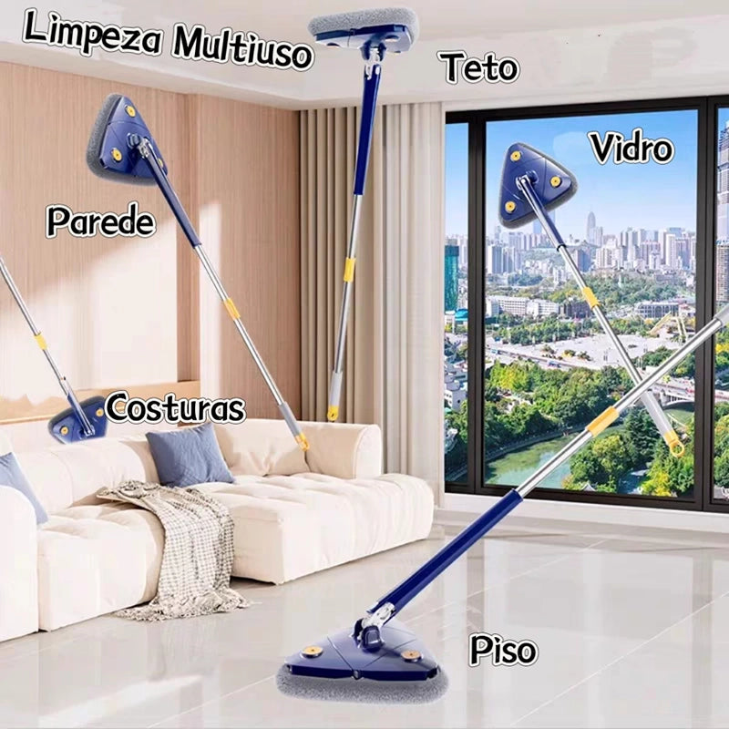 Com o Esfregão Mop Triangular Giratório 360° TriMop você limpa tudo com rapidez e praticidade — até os lugares mais difíceis!