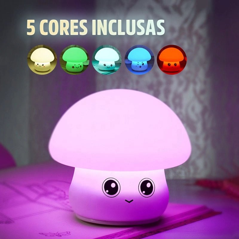A Mini Luminária LED Lumora tem formato de cogumelo fofo, luz suave e toque sensível. Recarregável e portátil, cria um ambiente acolhedor e encantador, ideal para relaxar e decorar qualquer espaço.